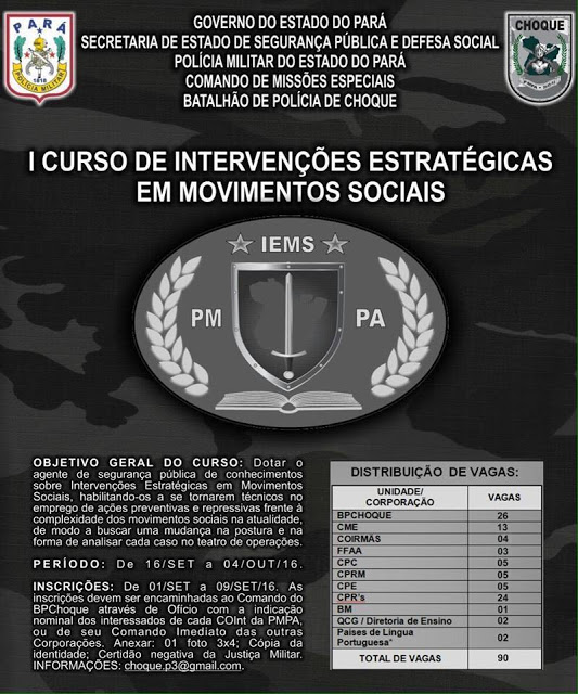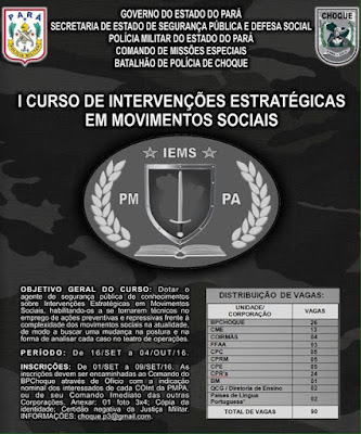 O curso, voltado para a própria polícia, visa, segundo o documento amplamente divulgado em várias mídias, “dotar o agente de segurança pública de conhecimentos sobre intervenções estratégicas em movimentos sociais, habilitando-os a se tornarem técnicos no emprego de ações preventivas e repressivas frente à complexidade dos movimentos sociais na atualidade, de modo a buscar uma mudança de postura e na forma de analisar cada caso no teatro de operações”.